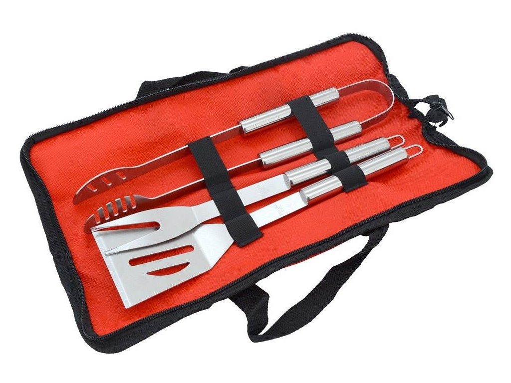Grilovací sada z kvalitní nerezové oceli, textilní zapínací taška na zip.