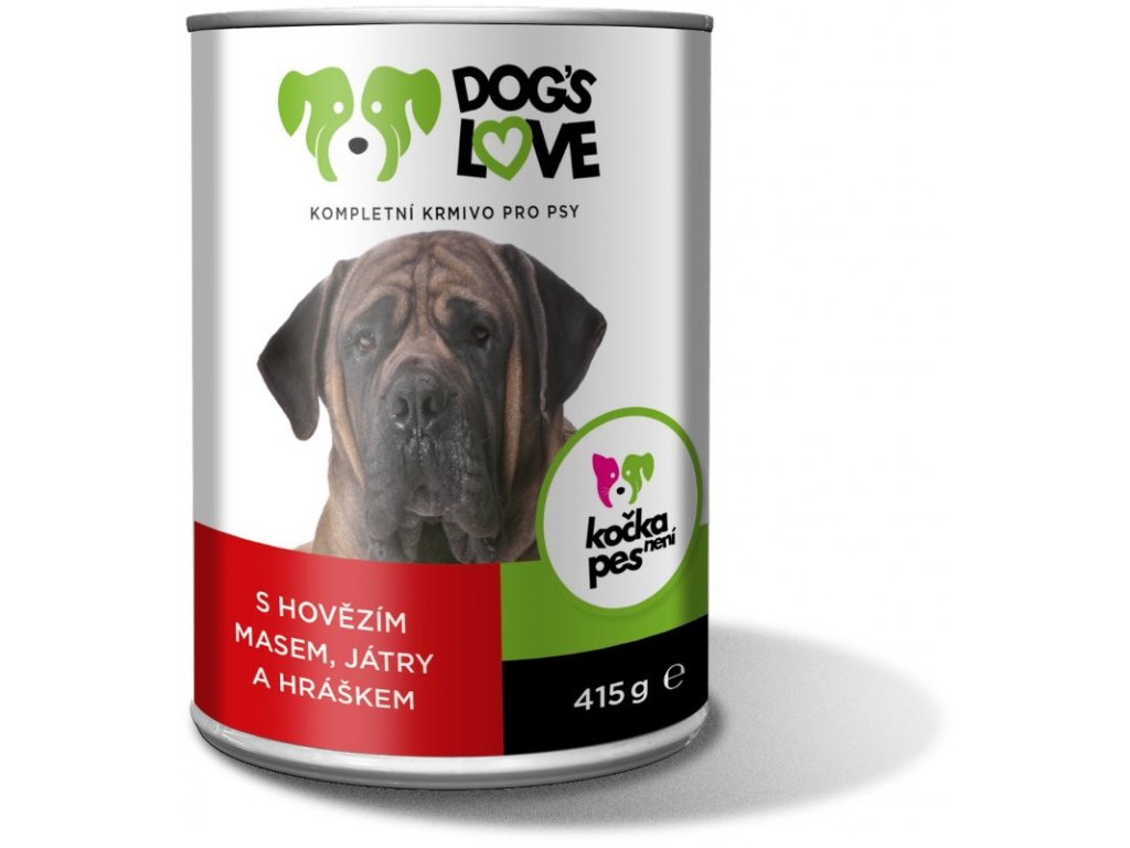 Konzerva DOG’S LOVE S HOVĚZÍM MASEM, JÁTRY A HRÁŠKEM je krmivo pro dospělé psy. Složení38% maso a výrobky...