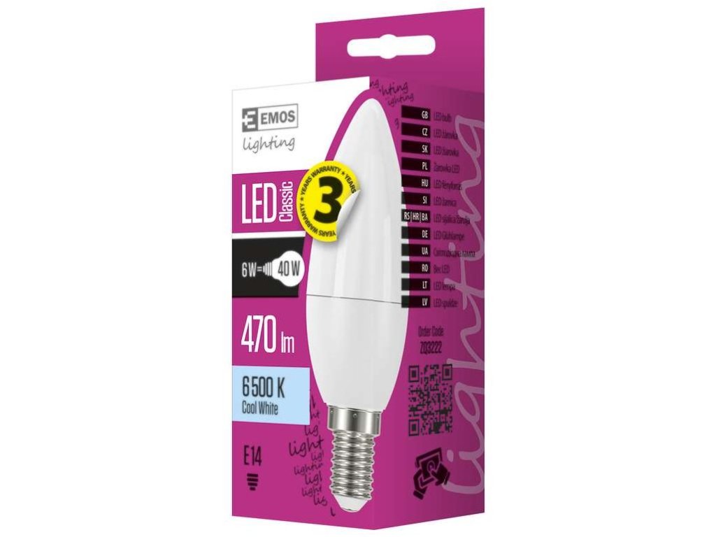 EMOS LED žárovka Classic Candle 6W E14 studená bílá