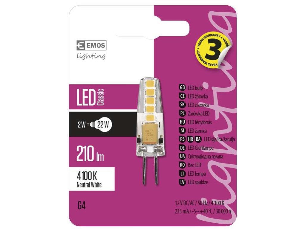 EMOS LED žárovka Classic JC A++ 2W G4 neutrální bílá