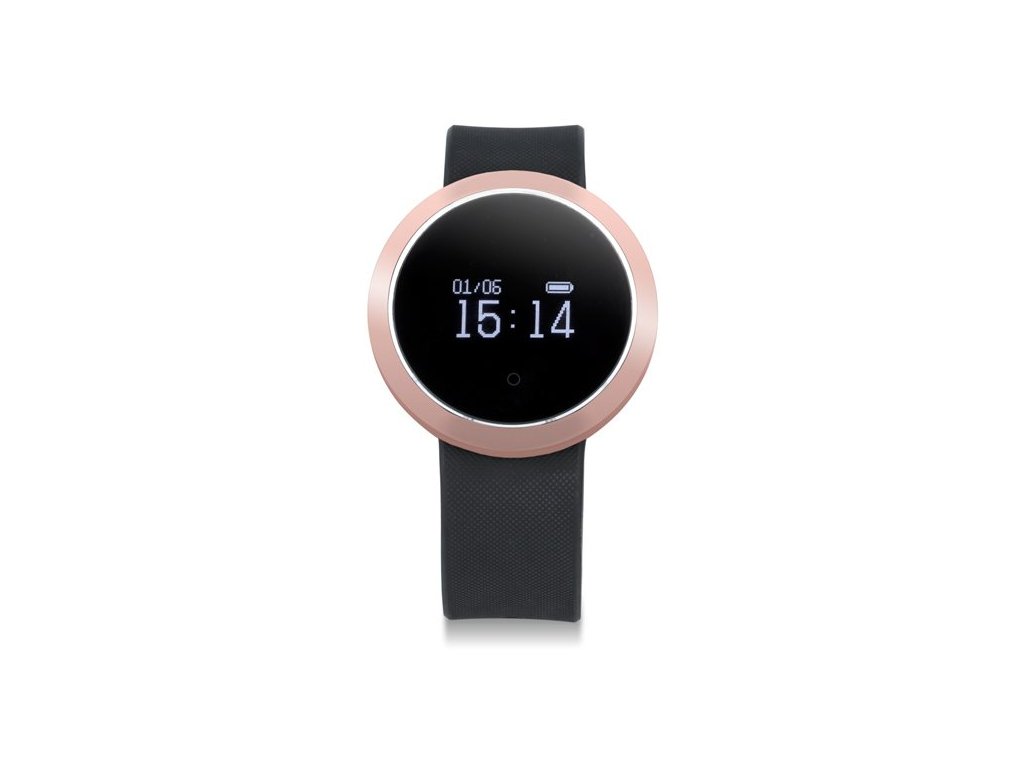 Růžový fitness náramek s nádechem zlatého odstínu jistě ocení...
