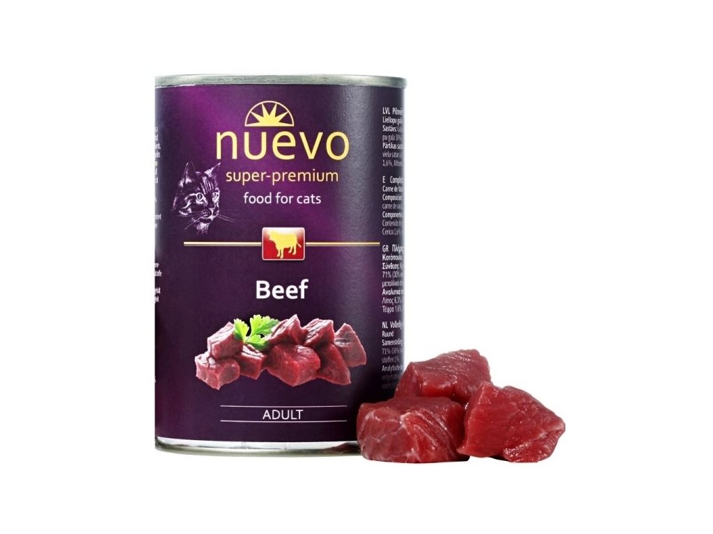 Hovězí konzerva Nuevo obsahuje maso nejvyšší kvality, které dodává Vaší kočce...