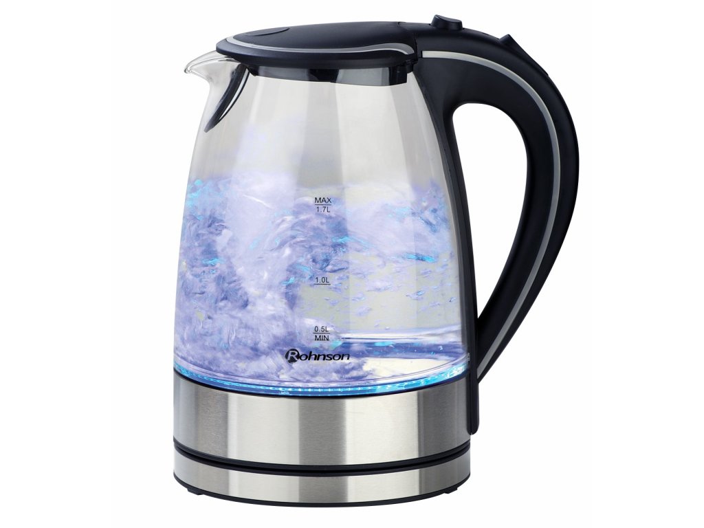 Rychlovarná konvice objem 1,7 l, příkon 2000W, materiál sklo, skrytá spirála, filtr, otočná základna, automatické vypnutí, ochrana proti přehřátí a led osvětlení, typ filtru vyjímatelný, černá a nerez