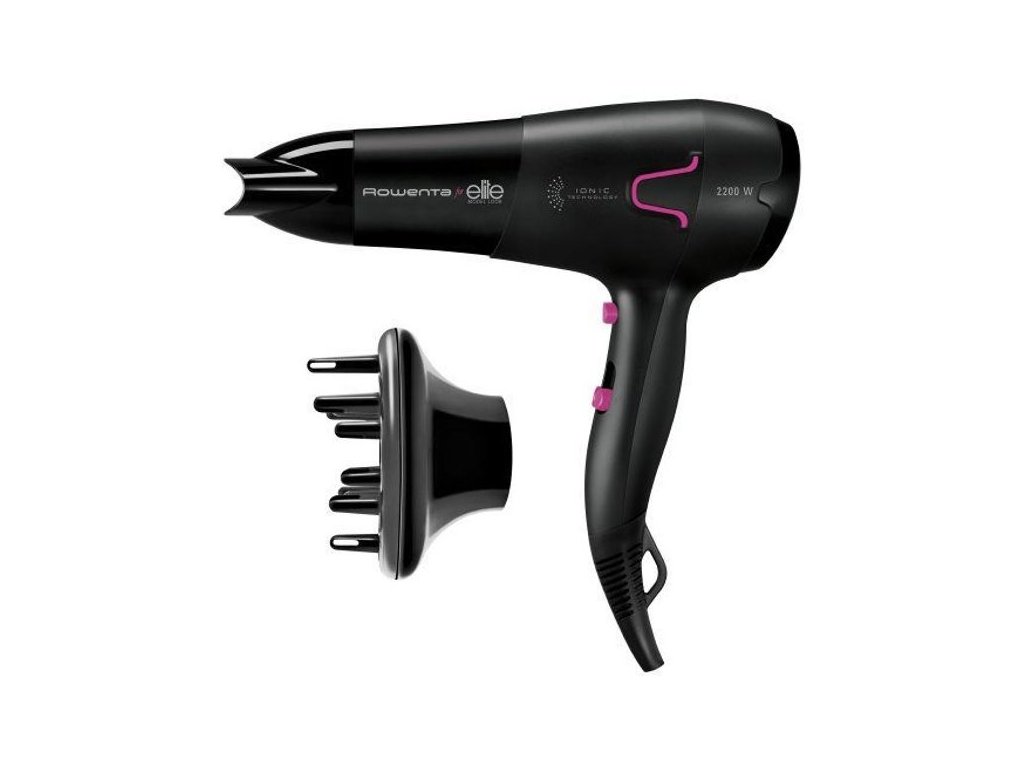 Fén na vlasy s ionizátorem, s difuzérem, příkon 2200 W, ionizace a studený vzduch, počet rychlostí 2, počet teplot 3, difuzér, délka přívodního kabelu 1,8 m, barva černá