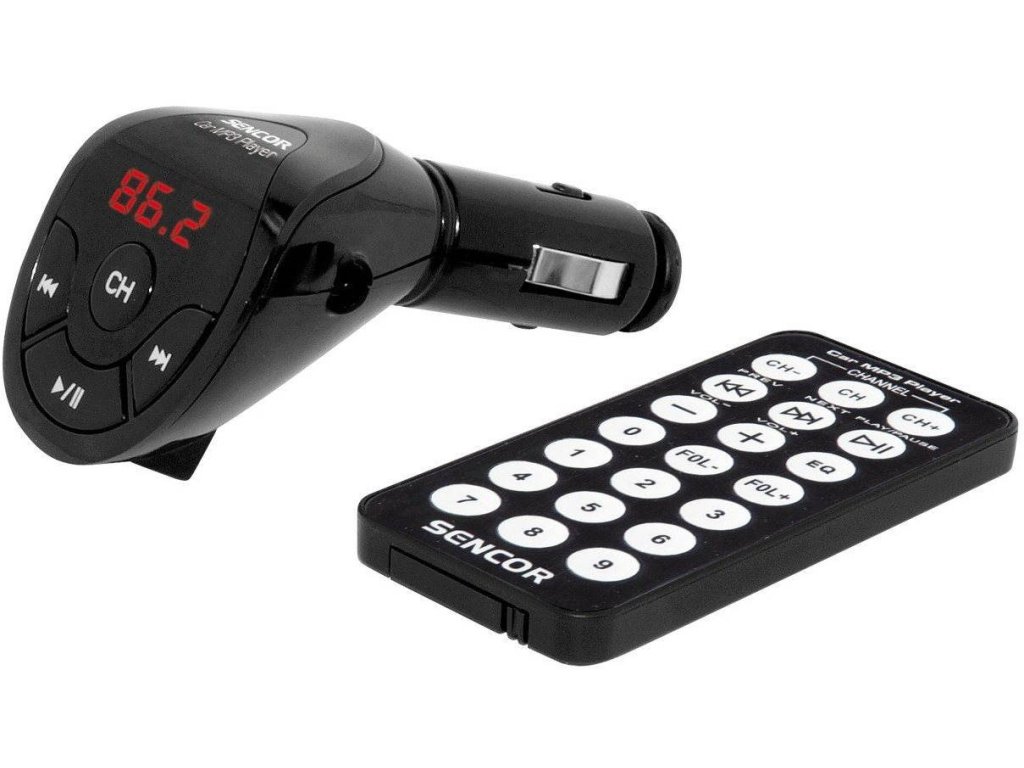 FM Transmitter USB 2.0/ Line-In, bezdrátový přenos MP3 přes FM, LED displej, dobíječka, 12V DC napájení, DO