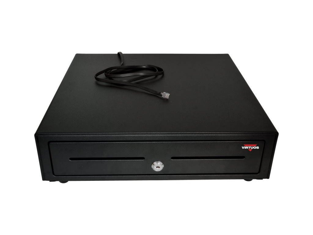 Pokladní zásuvka včetně kabelu s RJ12-6P6C konektorem pro použití s běžnými tiskárnami a adaptéry RS-232 i USB Virtuos, 24V